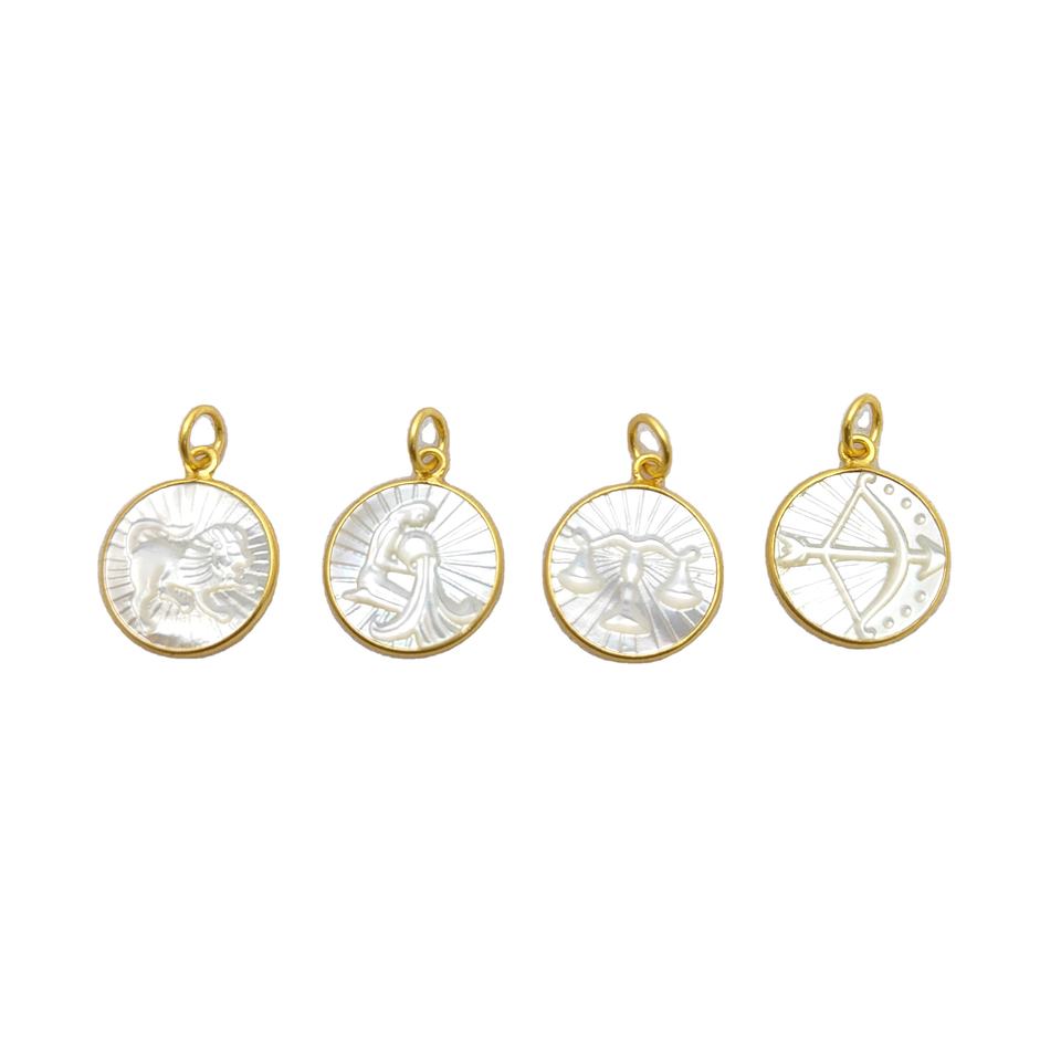 Mother Of Pearl Aries Zodiac Sign Carving Sterling Silver Bezel Pendant