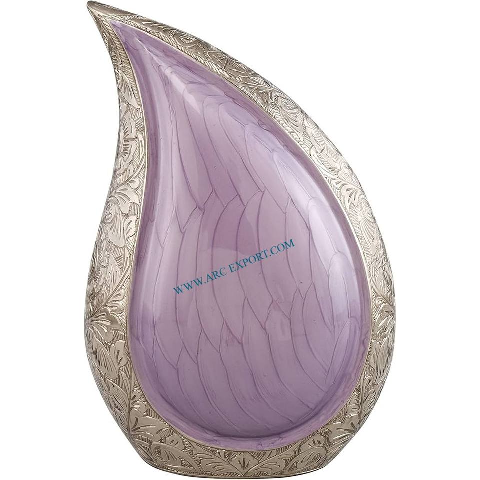 Mother Of Pearl Engraving Aluminum Human Ashes Storage Vessel and Organization Tableau Tear Drop Shape Purple Color Handmade Urn