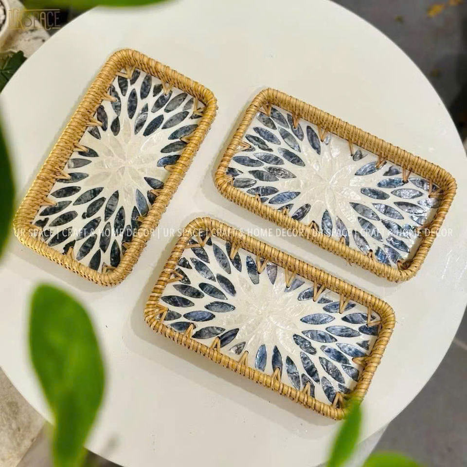 Mother Of Pearl Inlay Rattan Tray Natural Rattan And Shell For Tabletop Display Vietnam By 99 Gold Data - Ms Violet
