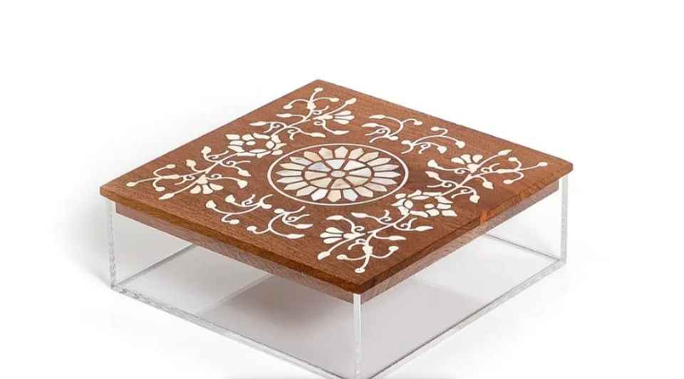 Modern Mother Pearl Inlay Wood Classic Square Food Storage Organizer Box Handmade Storage Jar for Kitchen Counter Gifting Home