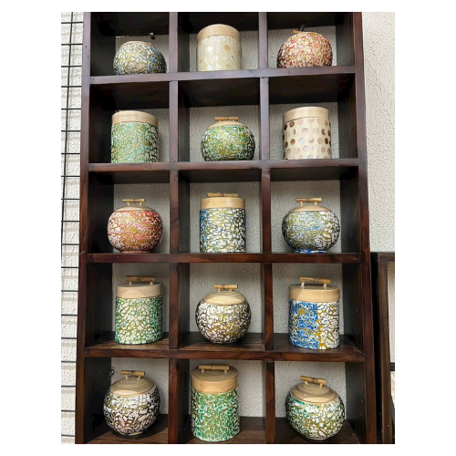 Mother of Pearl Bamboo Jar minimalist bamboo shell patterned container for modern home storage and styling Vietnam