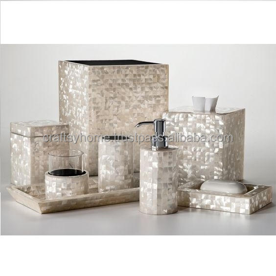 Mother of Pearl Bathroom Accessories Handmade Modern Shell Inlay Bathroom Set Vanity for Home Hotel Restaurant Best Bathroom Set