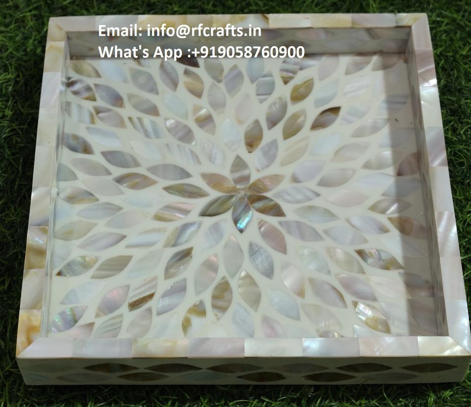 Mother of Pearl Detailed Vanity Towel Tray Decorative Bathroom Countertop Tableware