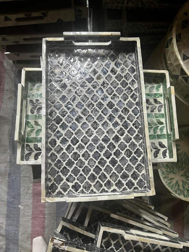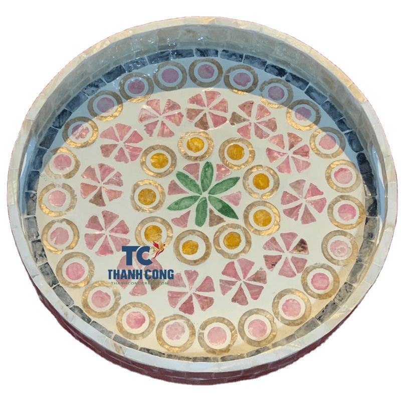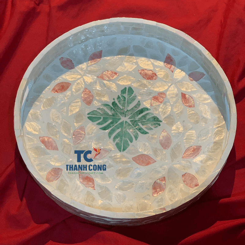Mother of Pearl Inlaid Tray With Lacquered Finish Decorative Serving Tray Round Tray Wholesale
