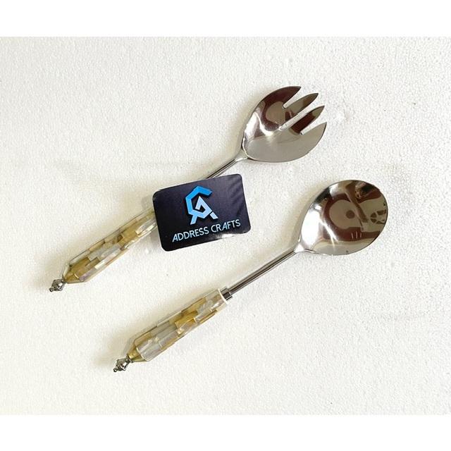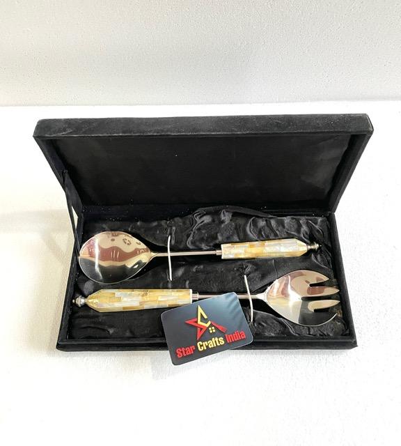 Mother of Pearl Inlay Cutlery Silverware Mirror Polished Salad Server Set Kitchenware Luxury Salad Spoon Fork Set Household Item