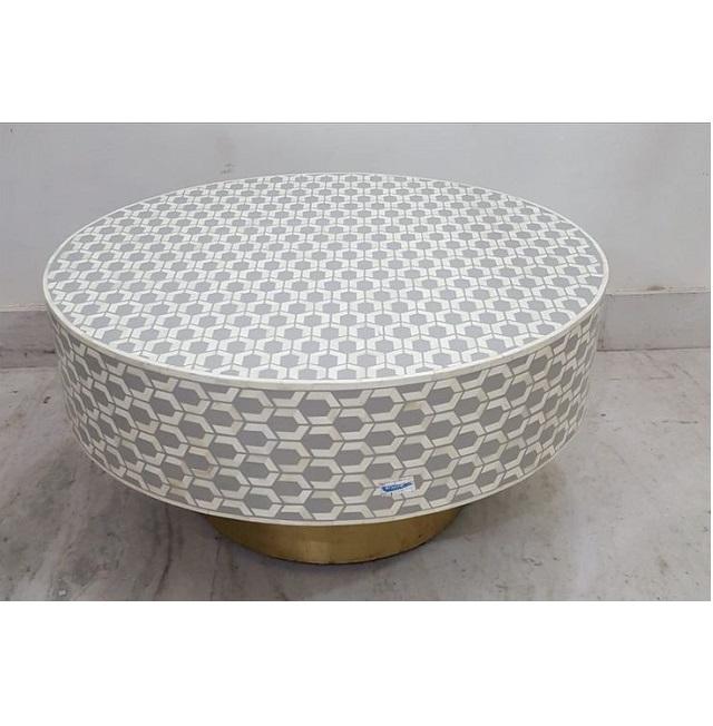 Mother of Pearl Inlay Footstool for Bedroom and Hall Handmade Accent Stool with Mother of Pearl Inlay for Interior Decoration