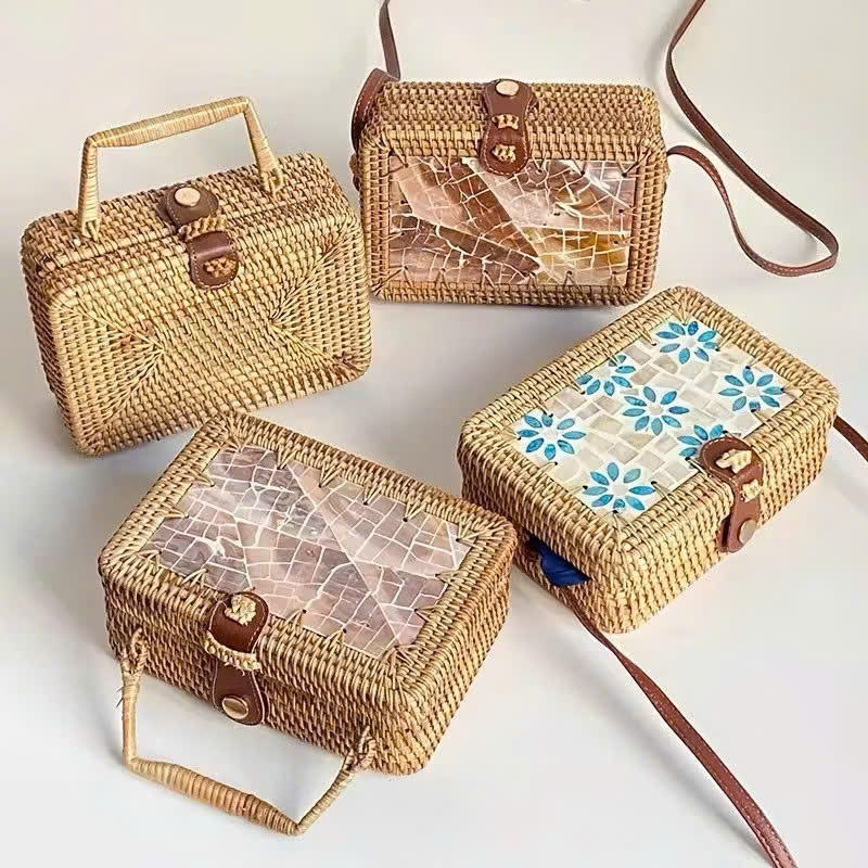 Keywords:Hand Bag Women, Mother of pear Inlay Rattan Bag