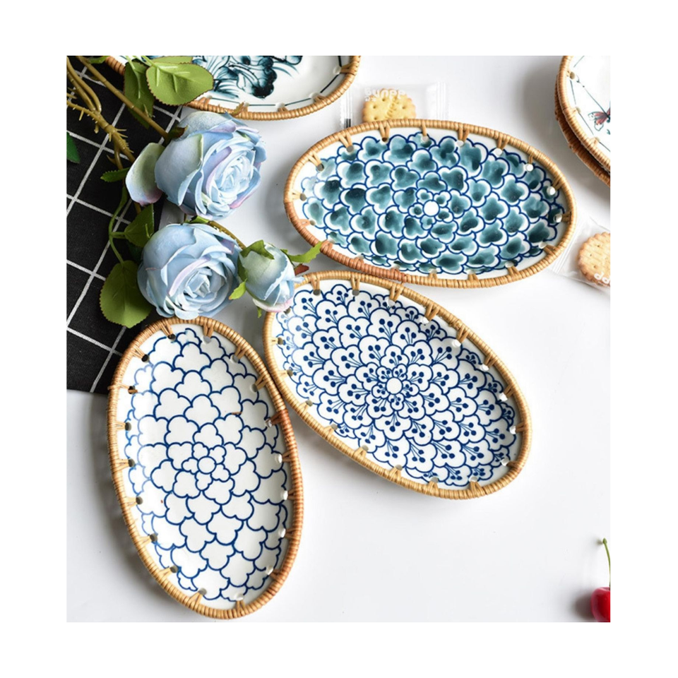 Mother of Pearl Inlay Rattan Tray MOP Shell Inlaid Woven Plate Handcrafted Rattan Serving Tray Decorative Wall Hanging Decor
