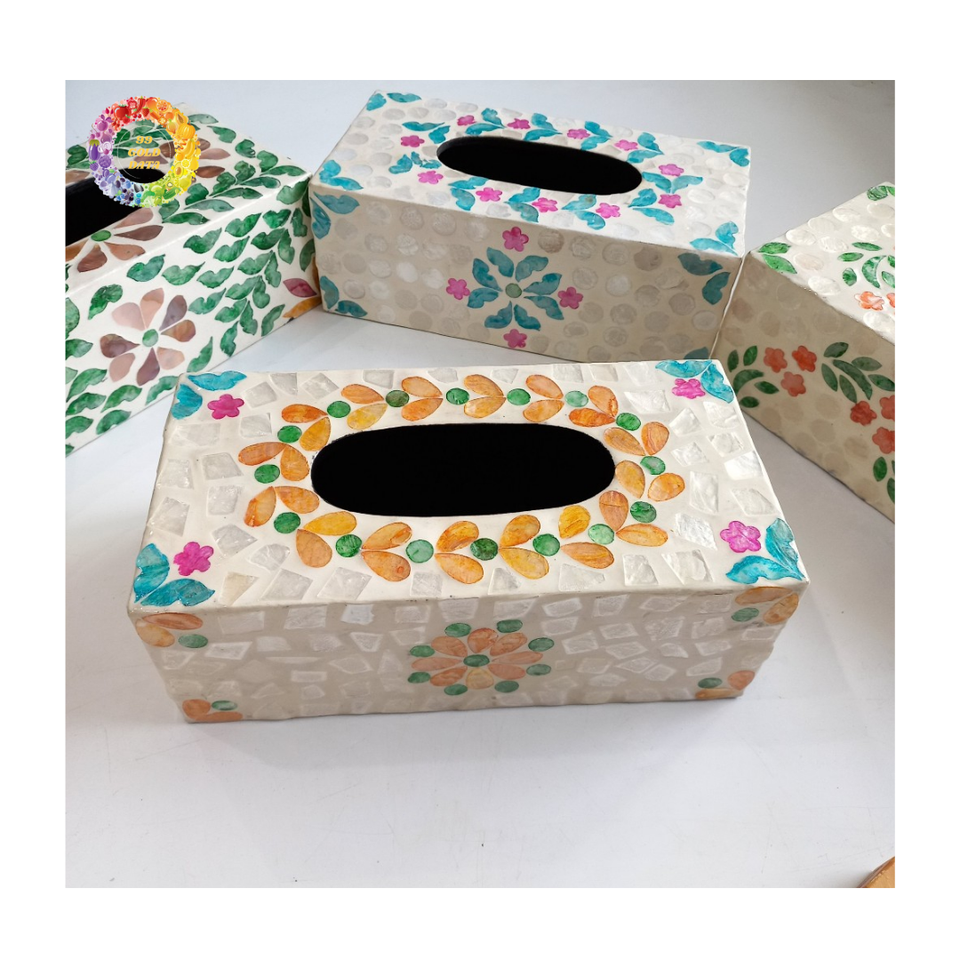 Mother of Pearl Inlay Tissue Box Cover Handmade Classic Mop Inlay Tissue Box With Acrylic Home Decorative Table Ware