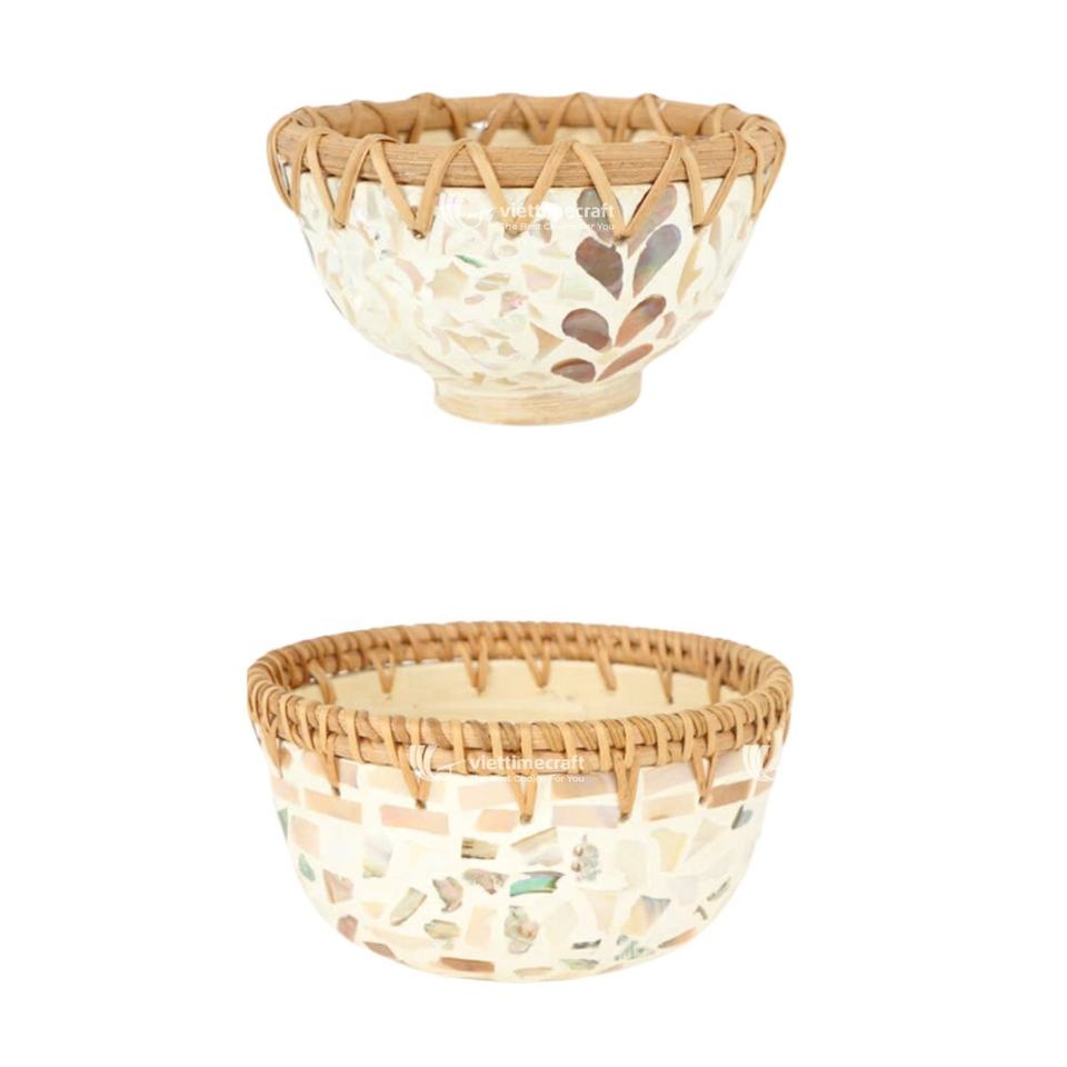 Mother of Pearl Mix Spun White Bamboo and Coiled Rattan Bowl, Bamboo Bowl Microbiological Made in Vietnam Wholesale
