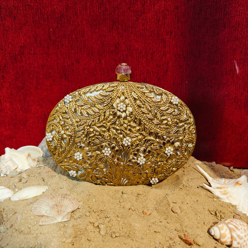 Decoration:Heavy gold floral filigree metalwork with pearl