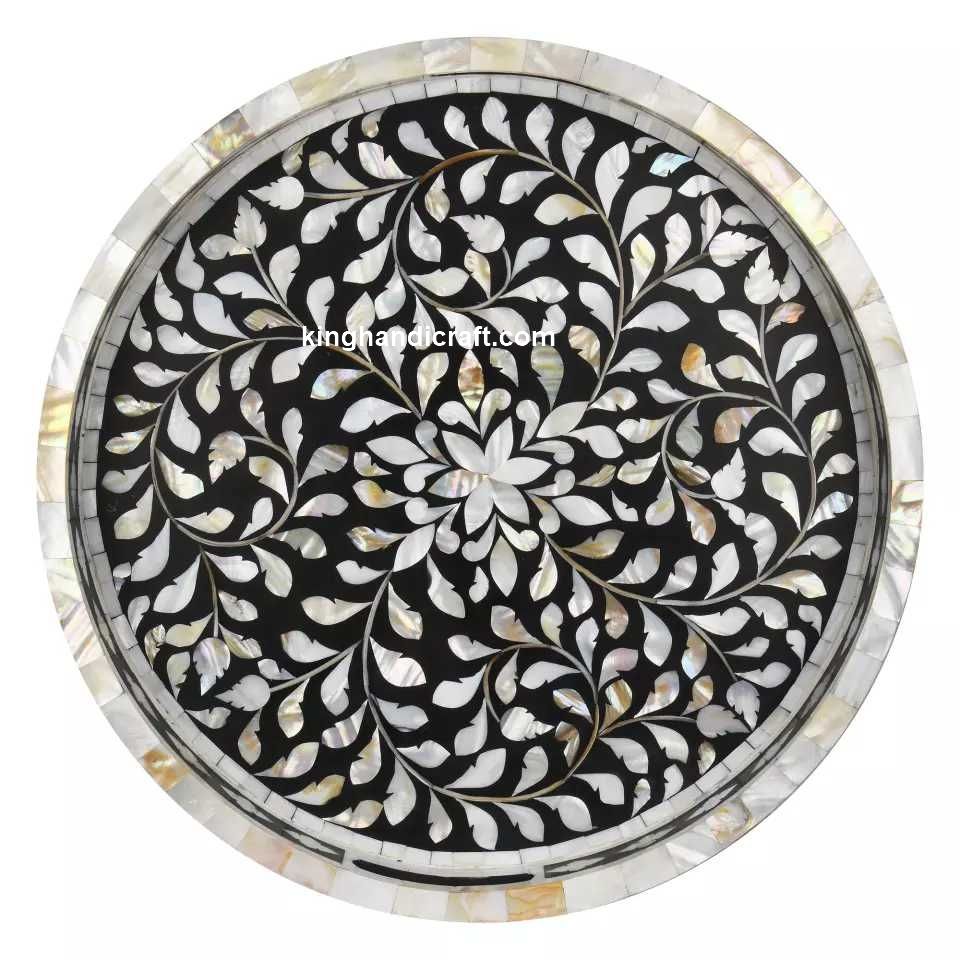 Mother of Pearl Platter for Ramadan Eid Celebrations | Handcrafted Bohemian Style Serving Tray Flexible Design for Food Beverage