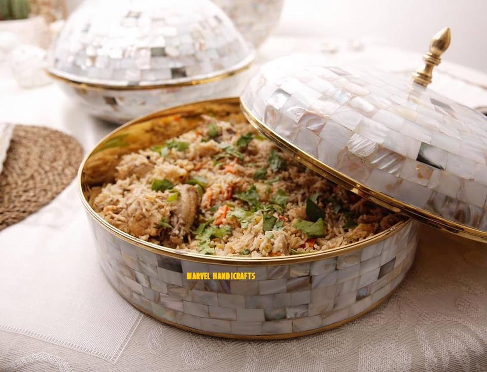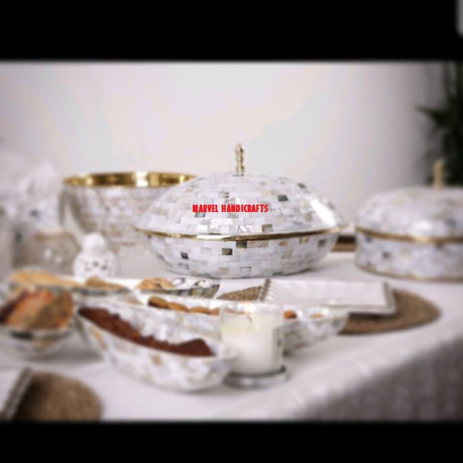 Mother of Pearl Ramadan Eid Serving Casseroles Metal Craft Food Warmer Hotpot Handicrafts Insulated Bowls Dinnerware Set