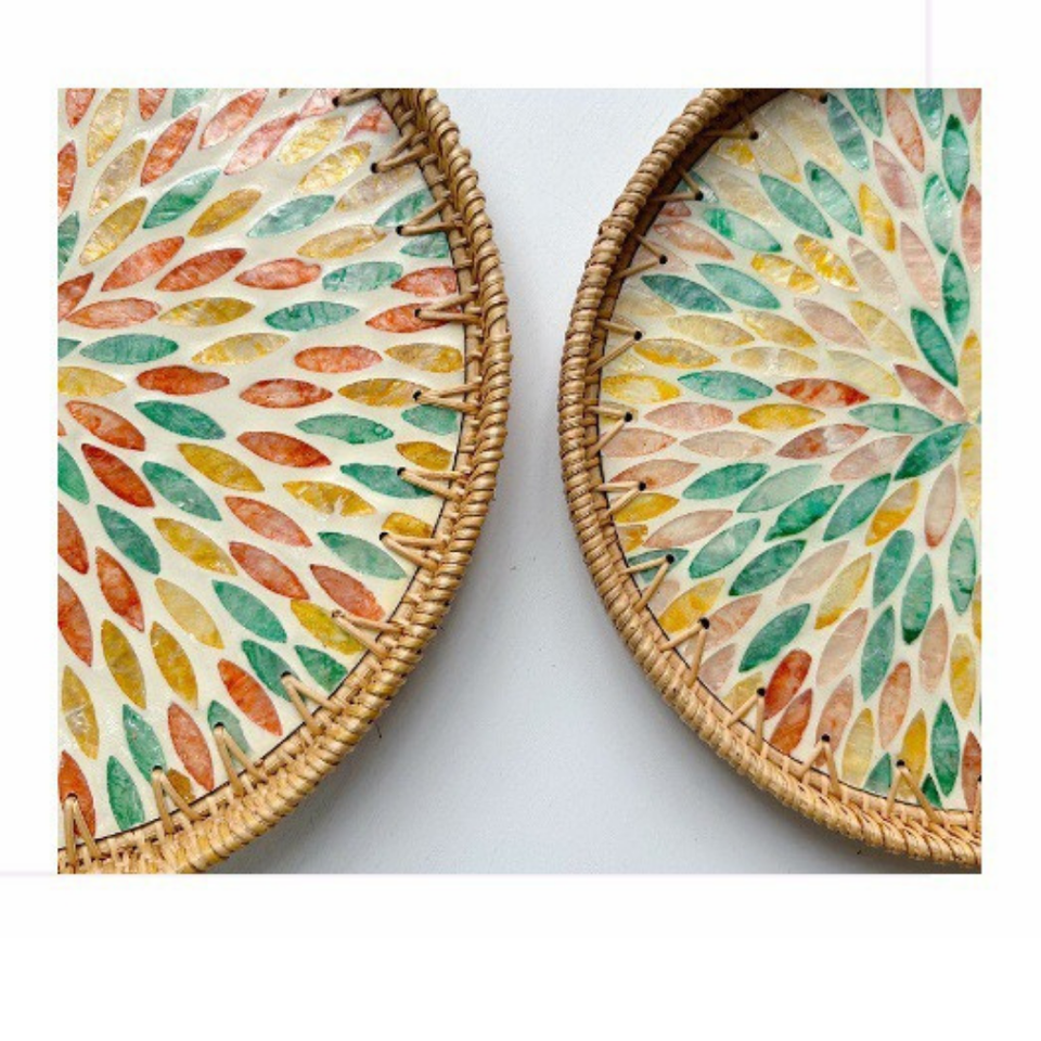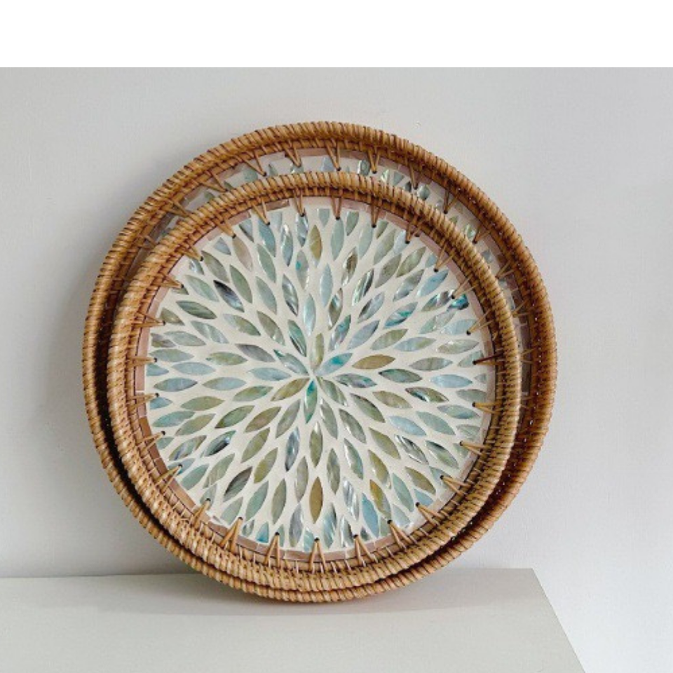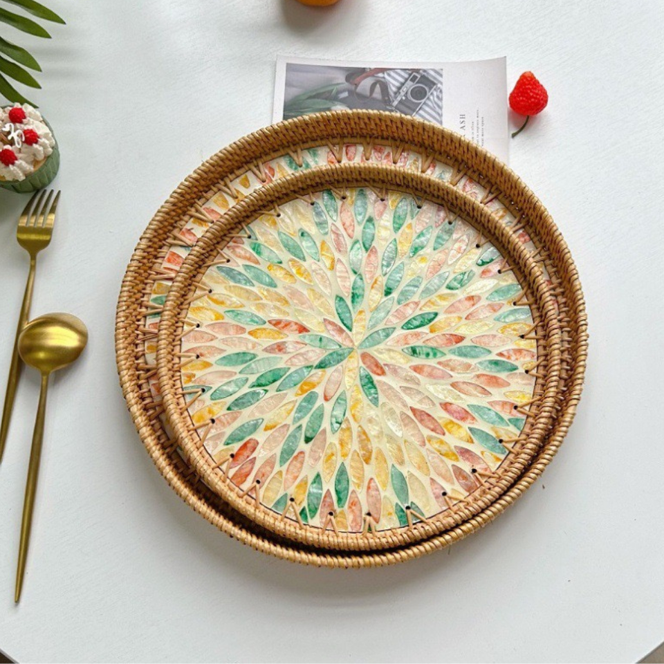 Mother of Pearl Rattan Storage Tray Natural Aesthetic Handmade Serving Tray With Multifunction Rustic Trendy Coffee Table Tray