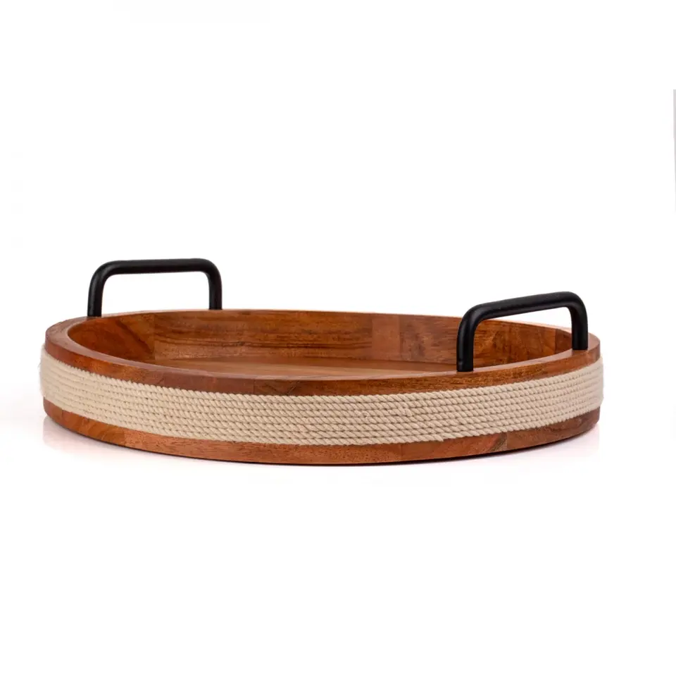 Mother of Pearl Serving Tray Platter with Set of 3 Wooden Bowls and Metal Lids for Home or Hotel Table Top Decor