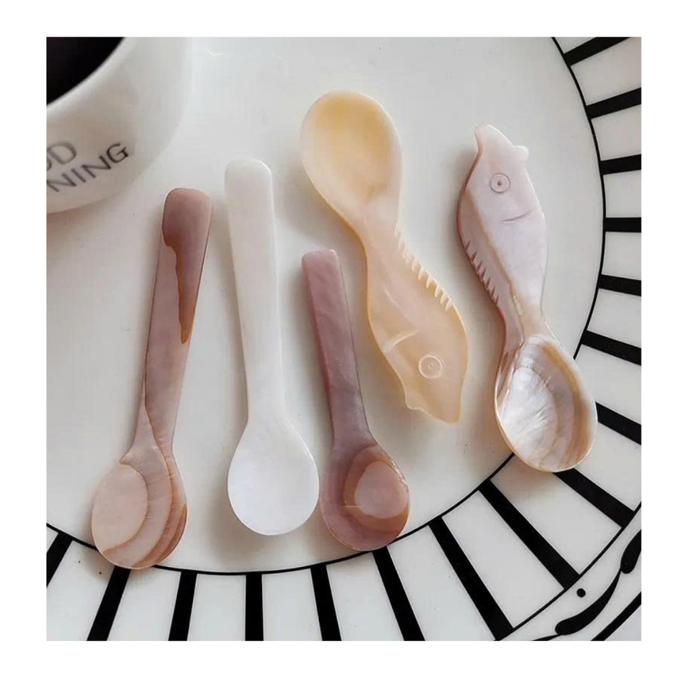 99 Gold Data Vietnam Mother of Pearl Seashell Spoon Elegant 10ml Caviar Serving Spoon Mirror Polish for Elegant Presentation