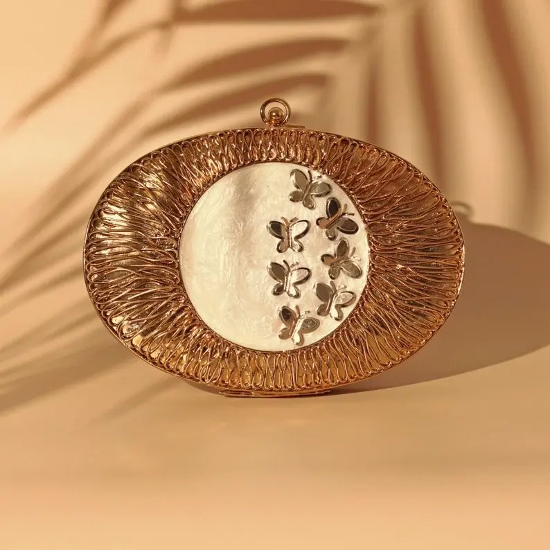 Mother of Pearls Original White Shell Ladies Handmade Clutch Bag Metal with Lock Decoration for Weddings and Special Occasions