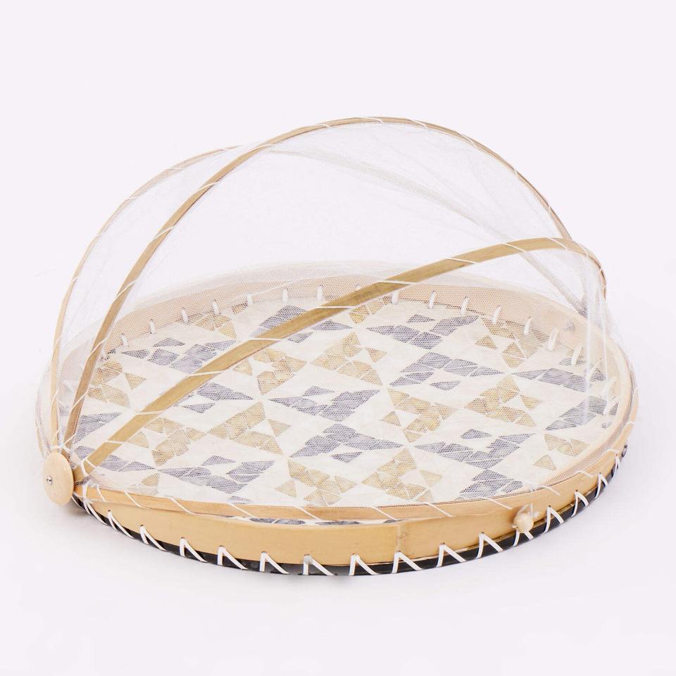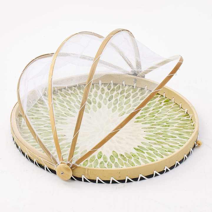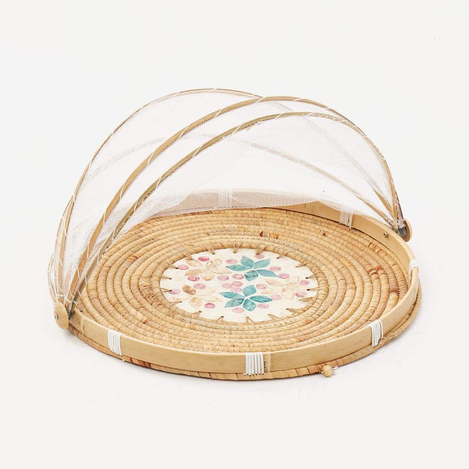 Mother of Pearl Inlay Food Netted Cover Bag Mosaic Serving Tray with Folding Net Tent for Protecting Dinner Meals