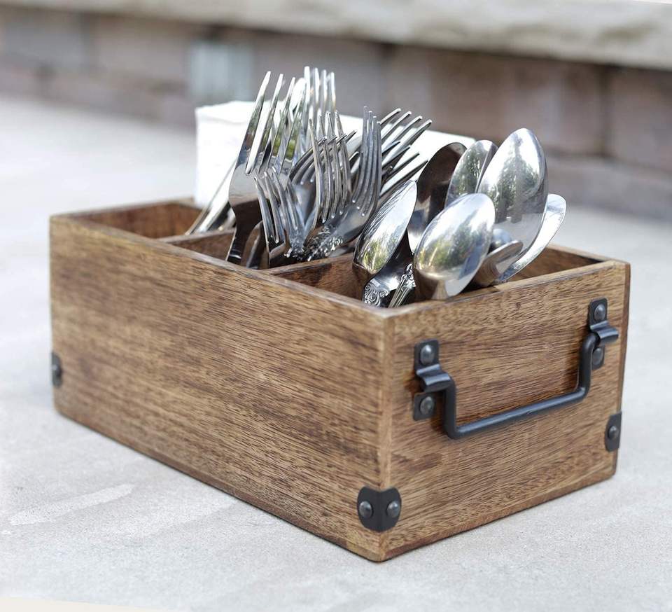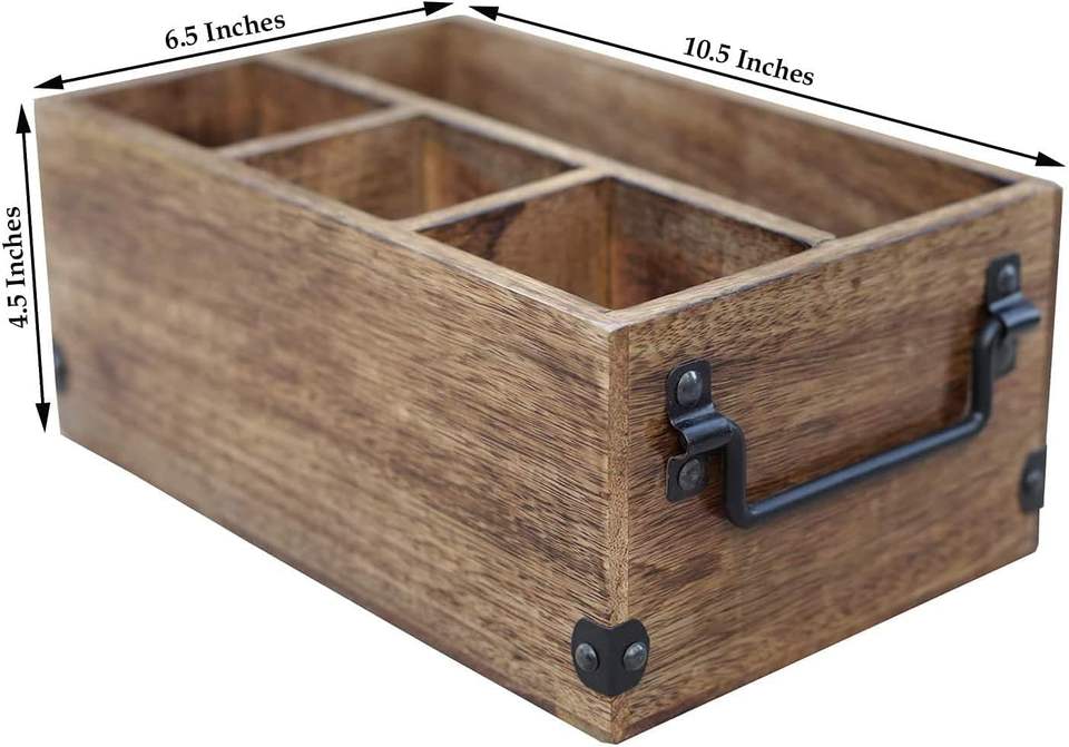 Mother's Day Gifts Wooden Kitchen Utensil Holder With 4 Compartments Wood Utensil Organiser for Cutlery, Napkins, Cups Caddy