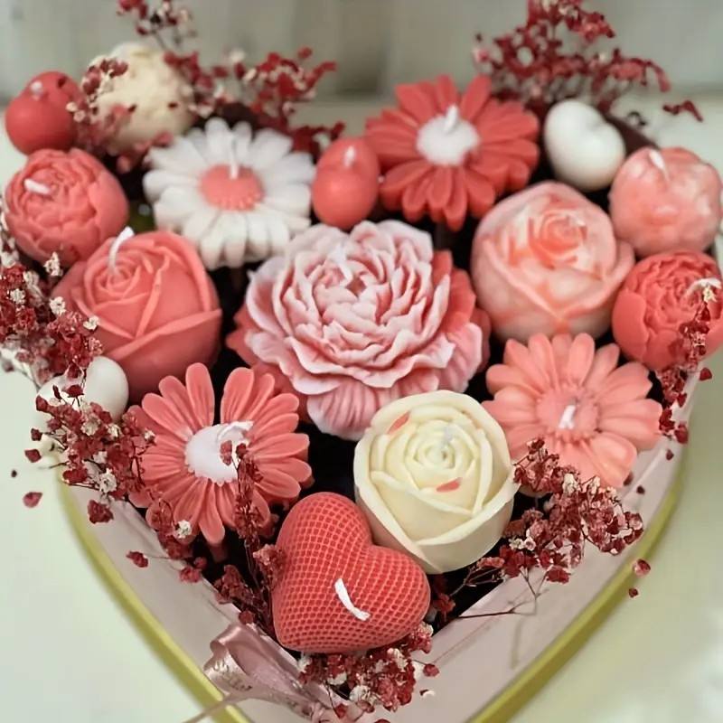 Mother's Day & Valentine's Day Home Decoration Casting Silicone Candle Mold Set Flower Heart Design with Scent for Home Use