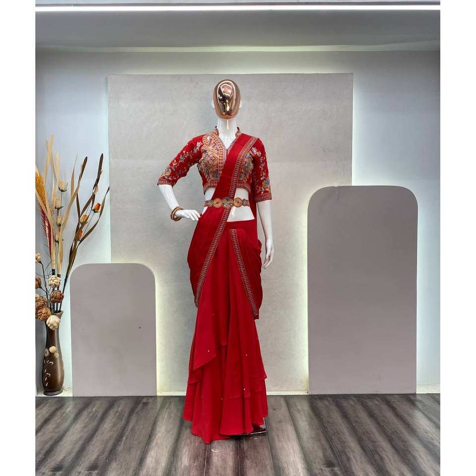 Moti Work Embellished Party Wear Lehenga Saree Elegant Prom Dresses Look