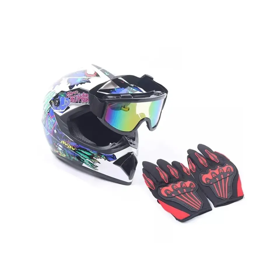 Motocross Adult Helmet and Gloves Goggles Set XL Size ABS and PC Material for Motor Cross Dirt Bike Road ATV UTV Riding