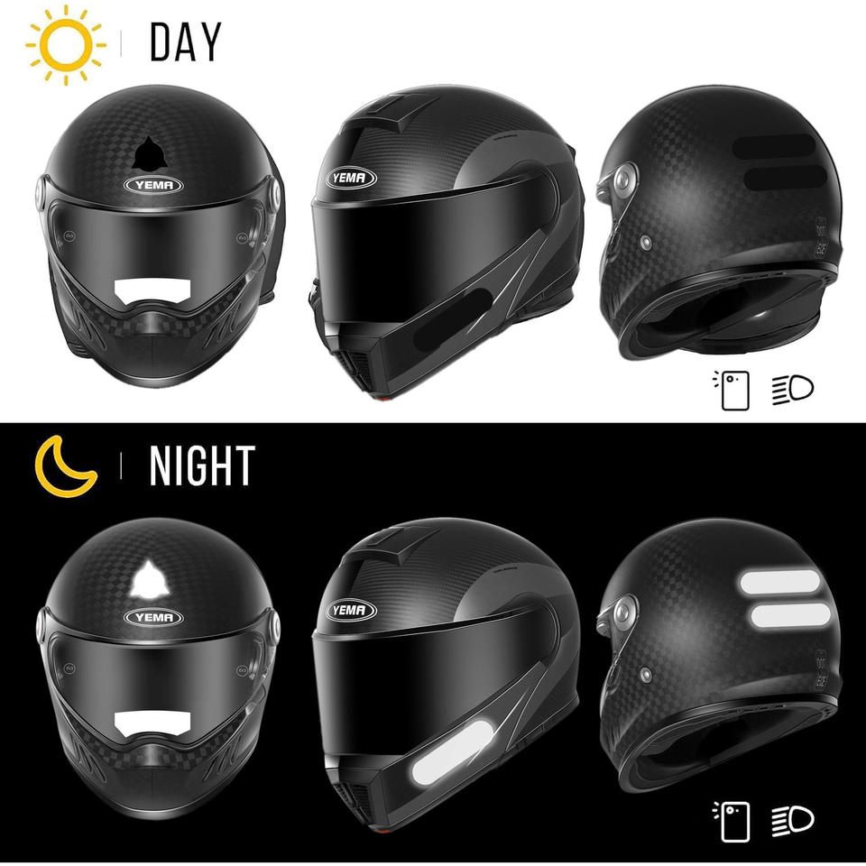 Motorcycle Helmet Reflective Stickers Black 3M Film Removable 8-Piece Set Racing Design Cartoon Invisible Strips