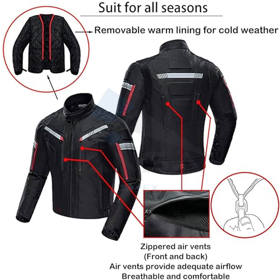 Motorcycle Jacket Motorbike Biker Waterproof Windproof Full Body Protective Gear Armoured Padding Summer Riding Jacket Black