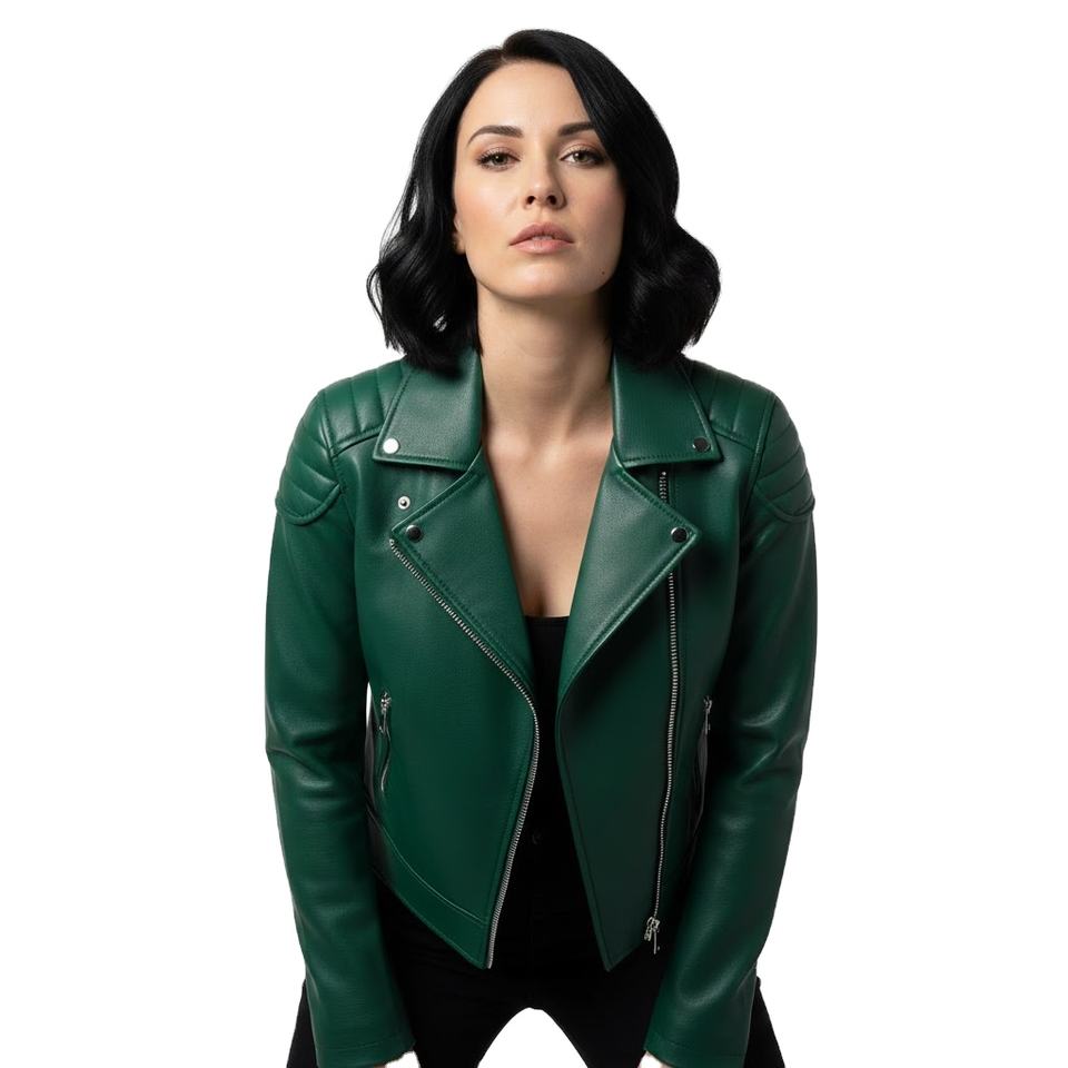 Motorcycle Jacket Women Green Leather Custom Made Bulk Wholesale Supplier Genuine Leather Biker Style Manufacturer OEM Service