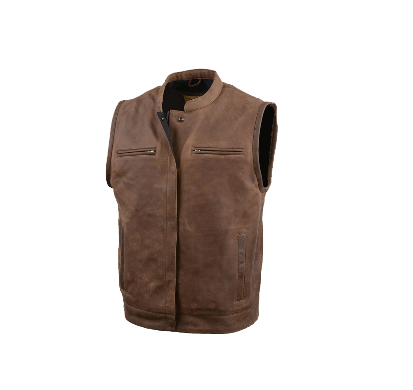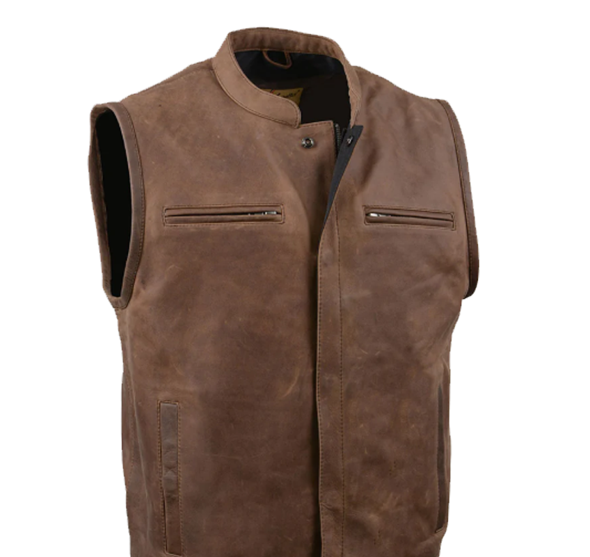 Motorcycle Leather Vest for Men With Concealed Pocket Adjustable Laces Biker Riders Leather Vest
