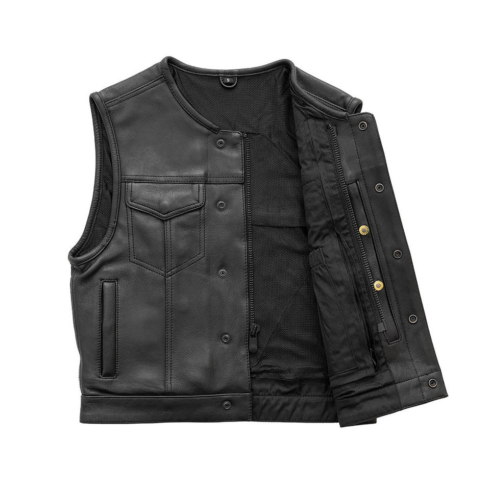 Motorcycle Vest Faux Leather Custom Men's Windproof V-Neck Button High Street Style Outerwear