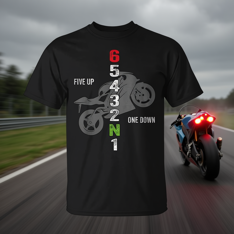 Motorcyclist Racing Gear Shift One Down Five up T-Shirt Promotional Motorcycle Racing Gear Shift T-Shirt