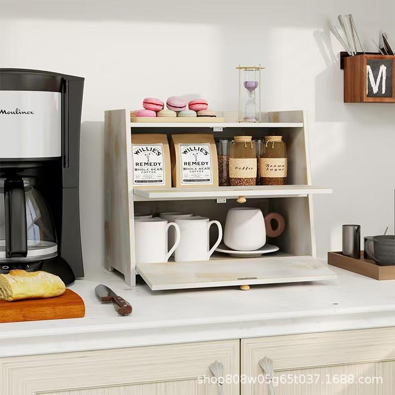 Moulinex Wooden Storage Rack L Size Double Layer Kitchen Countertop Organizer Retro Color Solid Wood Snack Fruit Holder
