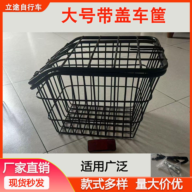 Mountain Bike Rear Basket With Lid Large Capacity Rack Mount Metal Durable For Students Backpacks