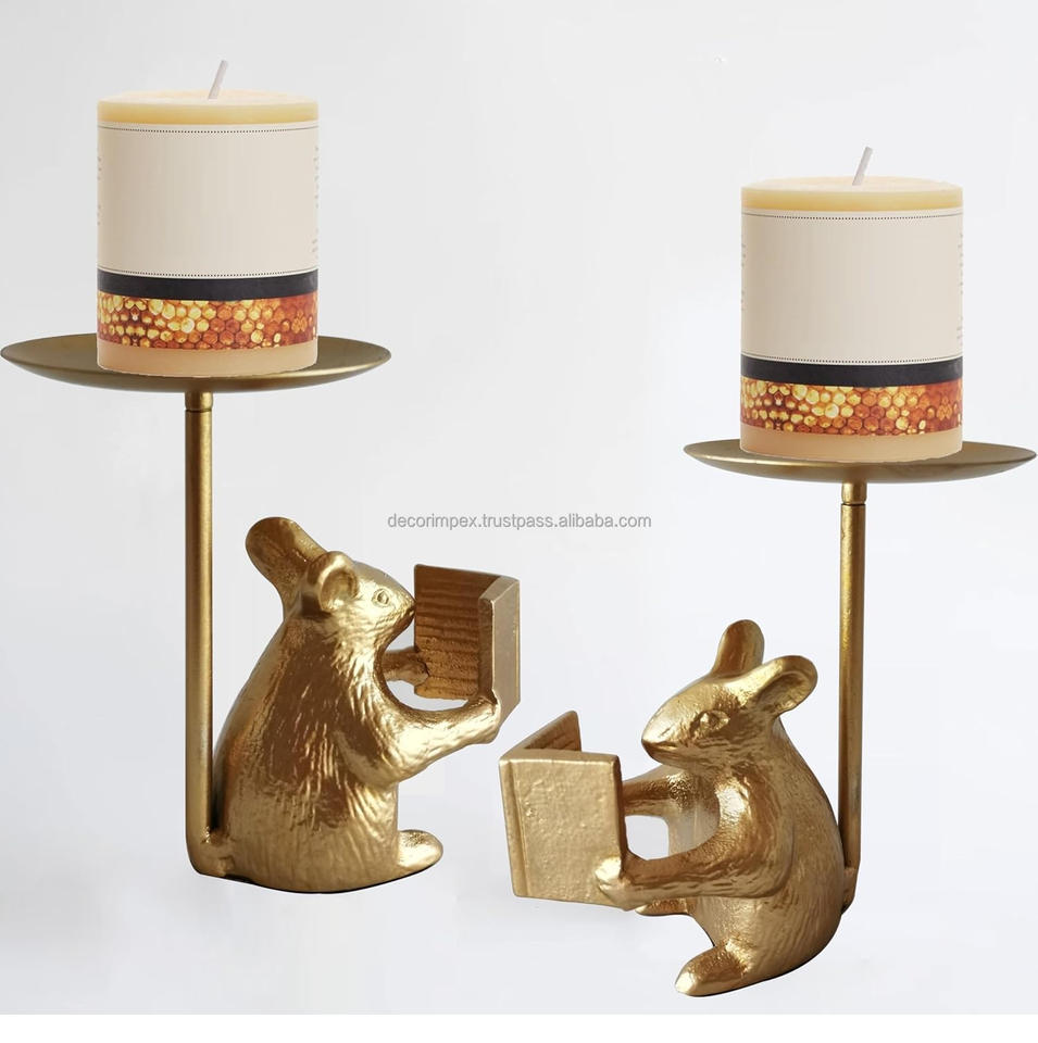 Mouse Reading Taper Candle Holders, Creative Animal Candlestick Holders, Centerpiece Table Decorative Candlelight, Dinner Metal