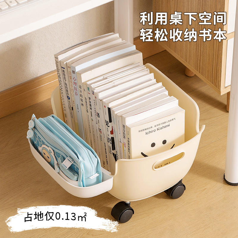 Movable Storage Bin With Wheels Rectangle Office Organizer For Books And Bags Under Desk Student Classroom Use