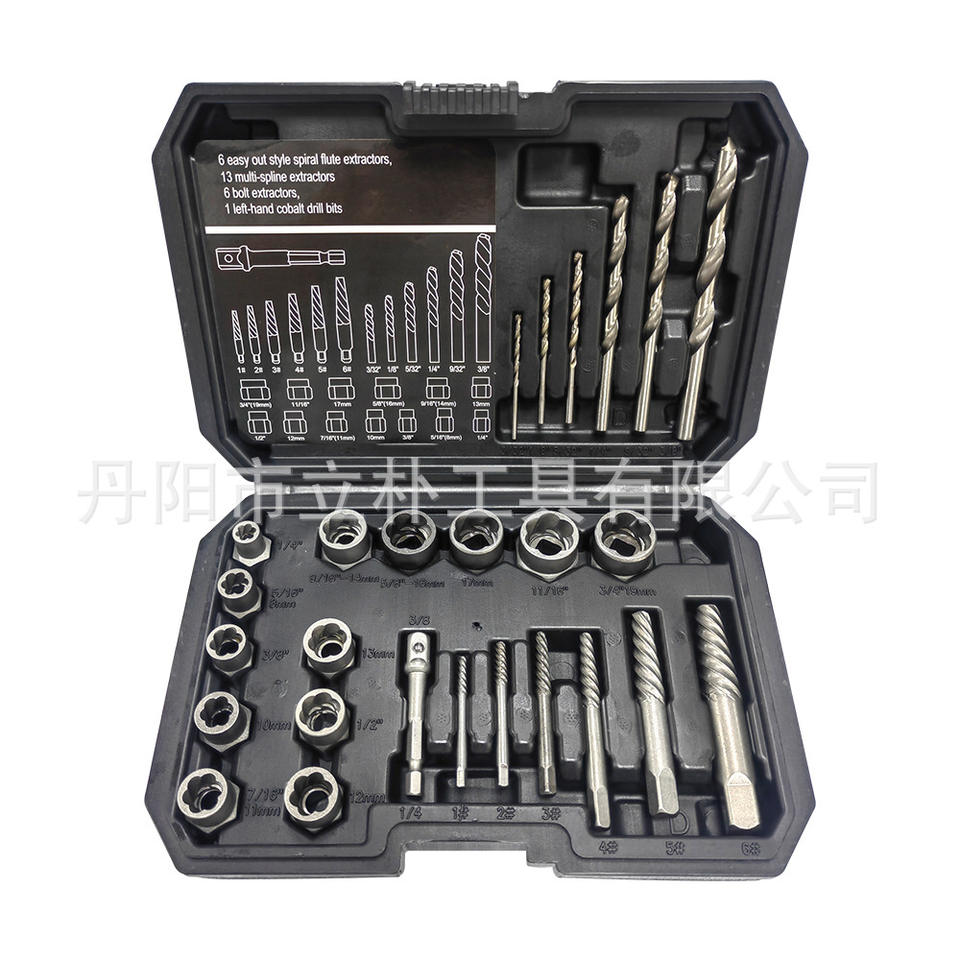 Specifications and Models:26-piece broken nut and bolt remover set, black plastic box [1180g]