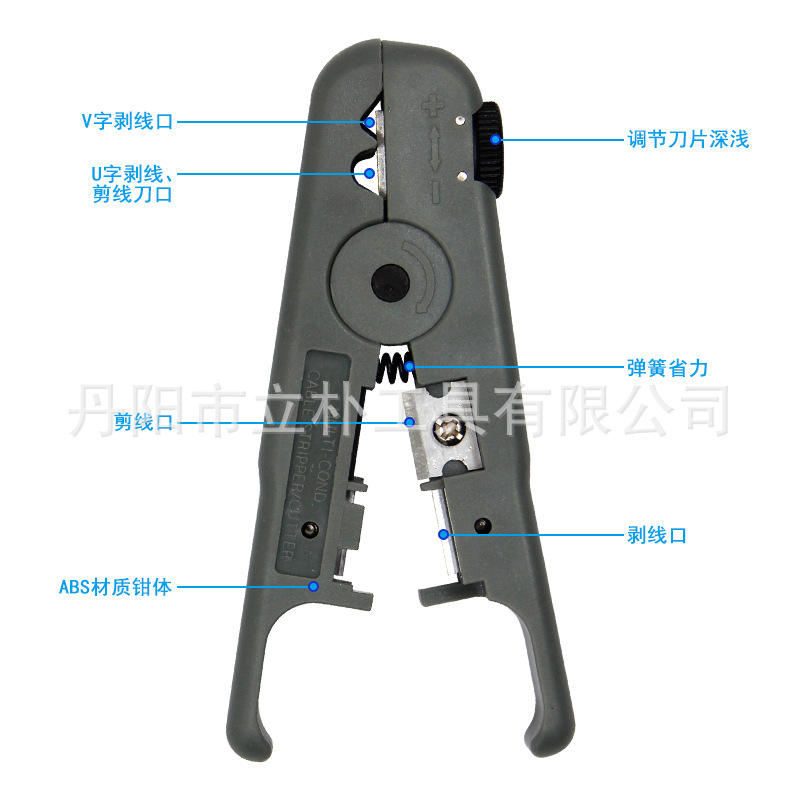Mr Drill Wire Stripper Pliers Grey Plastic Body Carbon Steel Blade Front Entry Stripping Cutting Tool For Telephone Cables