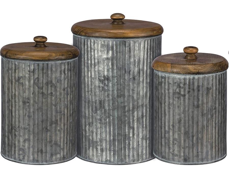 Ms inc Galvanized Iron Farmhouse Kitchen Storage Canister Vintage Home Metal Storage Canister for flour, tea, coffee, cookies