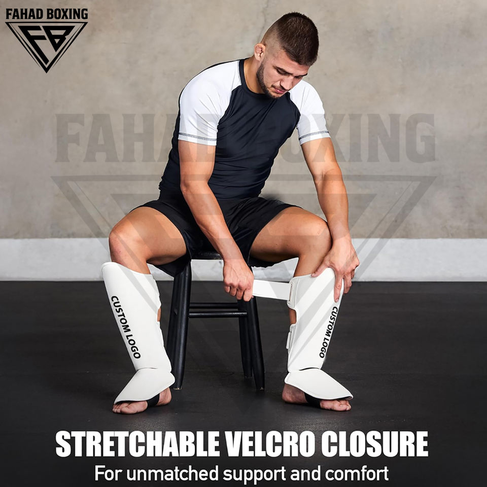 Muay Thai Kickboxing MMA Leg Instep Protective Sparring Training Gear Shin Pads Leather Hook and Loop Protective Boxing Gear