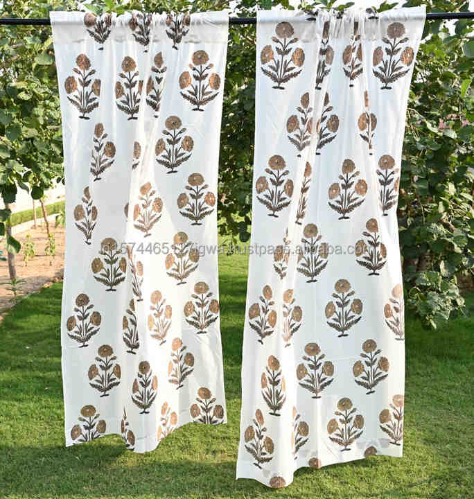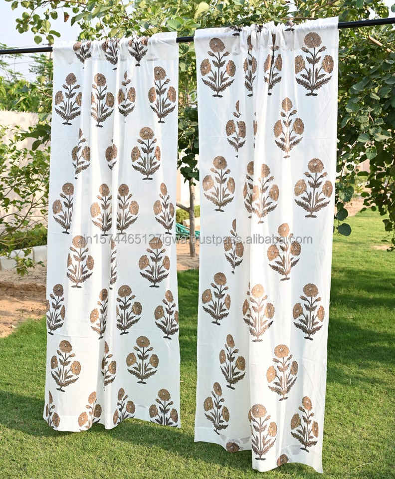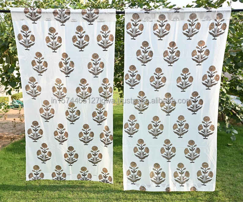 Mughal Floral Mustard Cotton Cafe Curtains Boho Window Drapes for Kitchen Bedroom Living Room Custom Home Decor Panels
