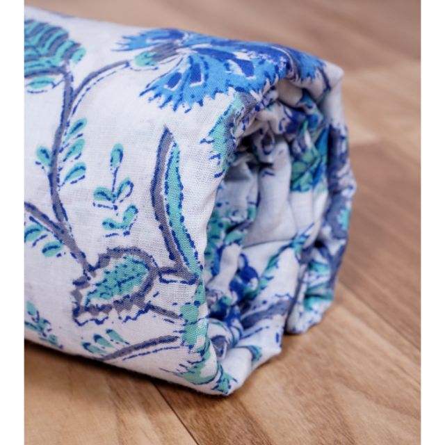 Mughal Flower Print Indian Cotton Fabric Block Print White and Blue Print Curtain Fabric Dress Fabric by the Yard