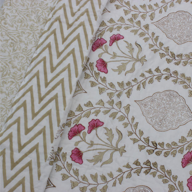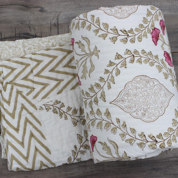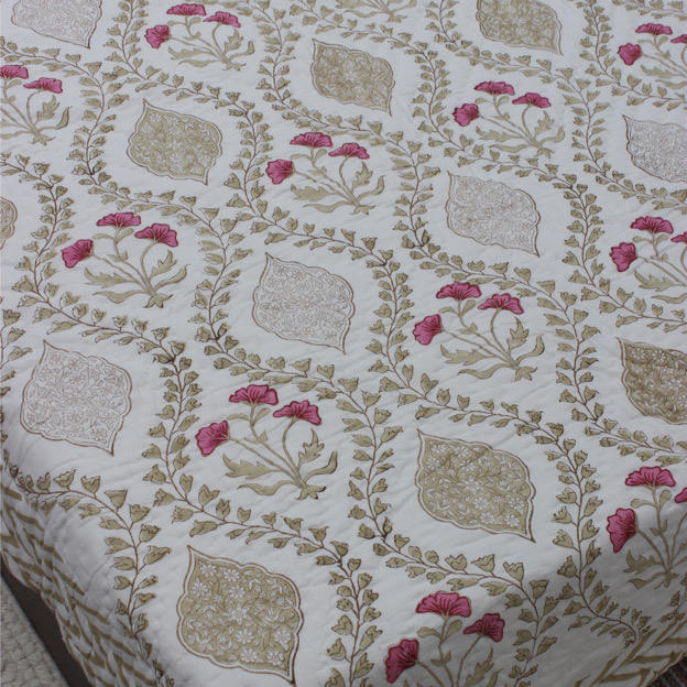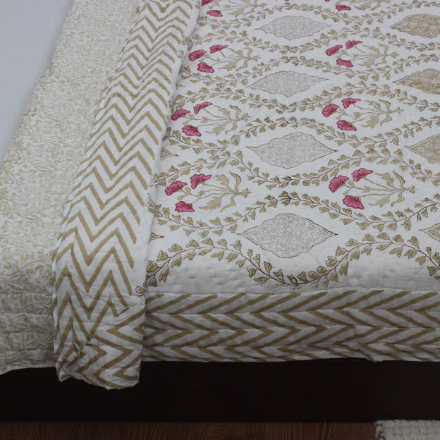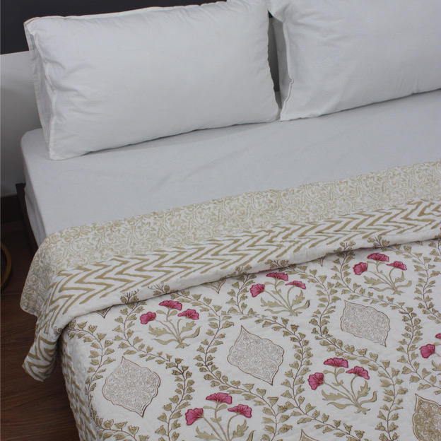 Mughal Jaal Hand Block Printed Cotton Jaipuri Reversible Quilt