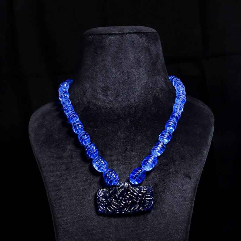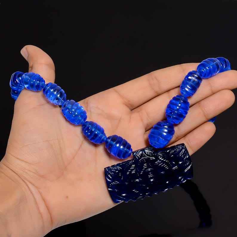 Keywords:Mughal Majesty Deep Blue Sapphire Carved Beads Antique Charm Royal