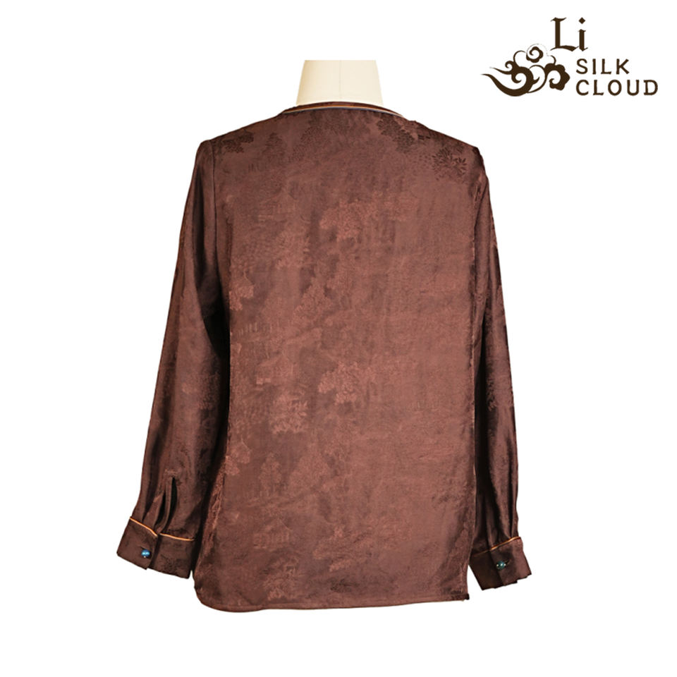 Mulberry Silk Jacquard Satin Floral Vintage Red Cloud Gauze Top Women's Summer Chinese Neck Regular Mid-sleeved Eco-friendly