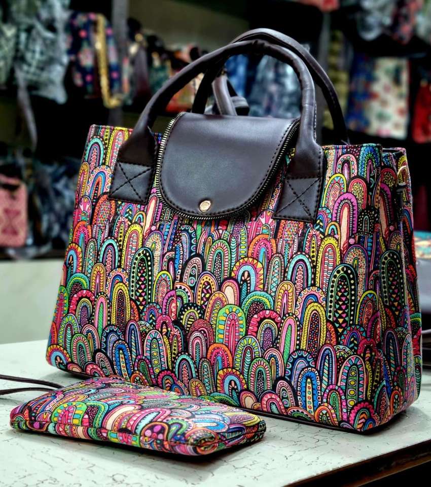 Multi-Color Abstract Arches Handbag Set with Top Handles