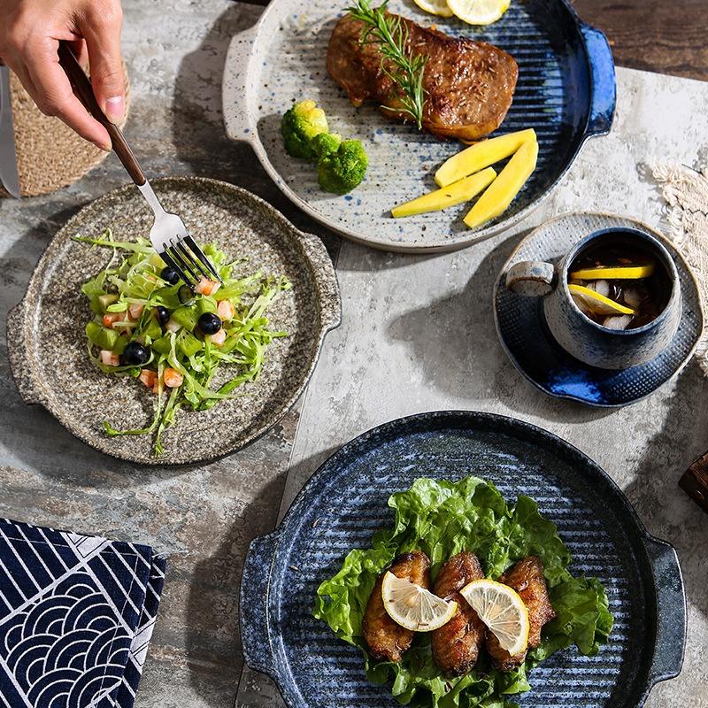 Multi Color Double Ear Plates Creative Ceramic Tableware Baking Plate Steak Plates & Dishes Available for Microwave and Oven