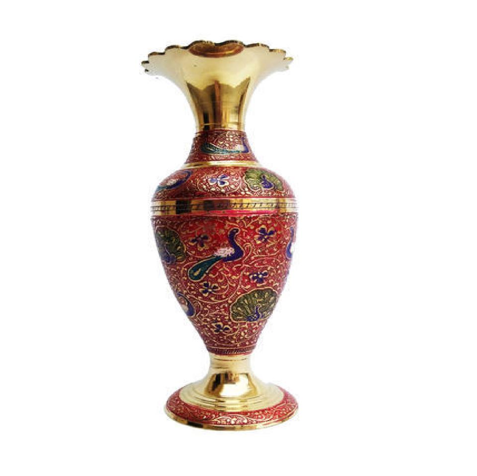 Multi Color Engraving Brass Flower Vase With White Paint And Gold Finished For Table Decor High Quality Decorative Flower Vase