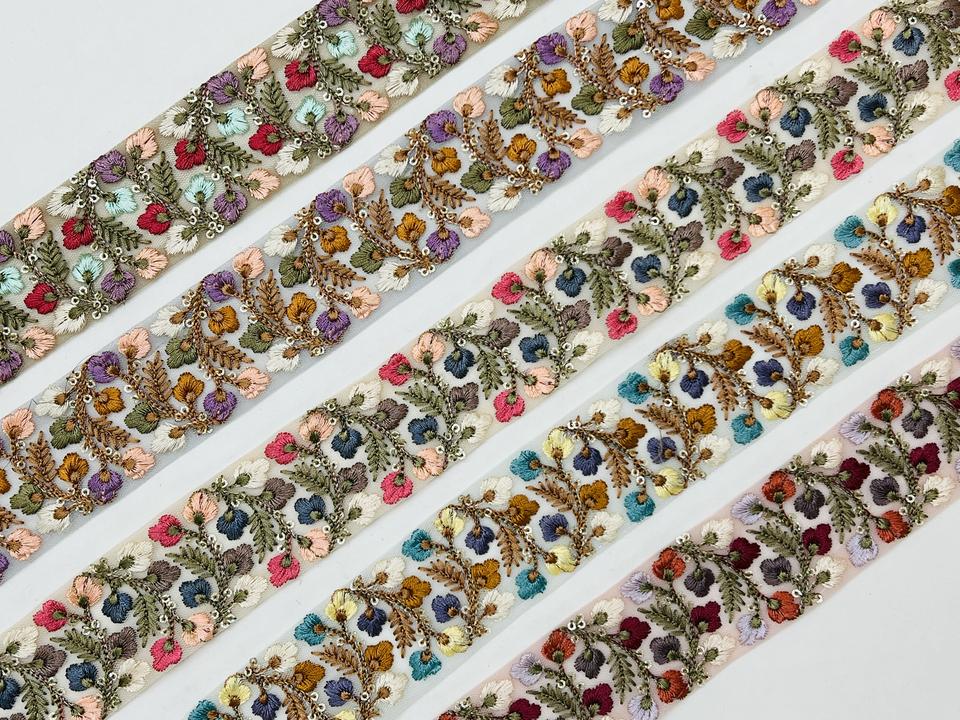 Multi Color Floral Embroidery Wedding Dress Lace Fabric Trim Shining French Tulle Mesh Border Ribbon Bridal Jacket Bag Belt