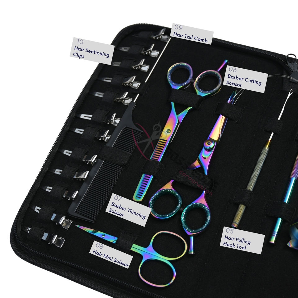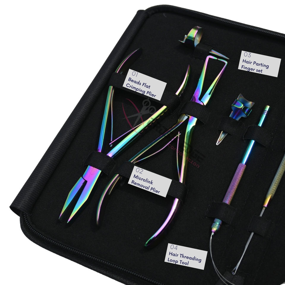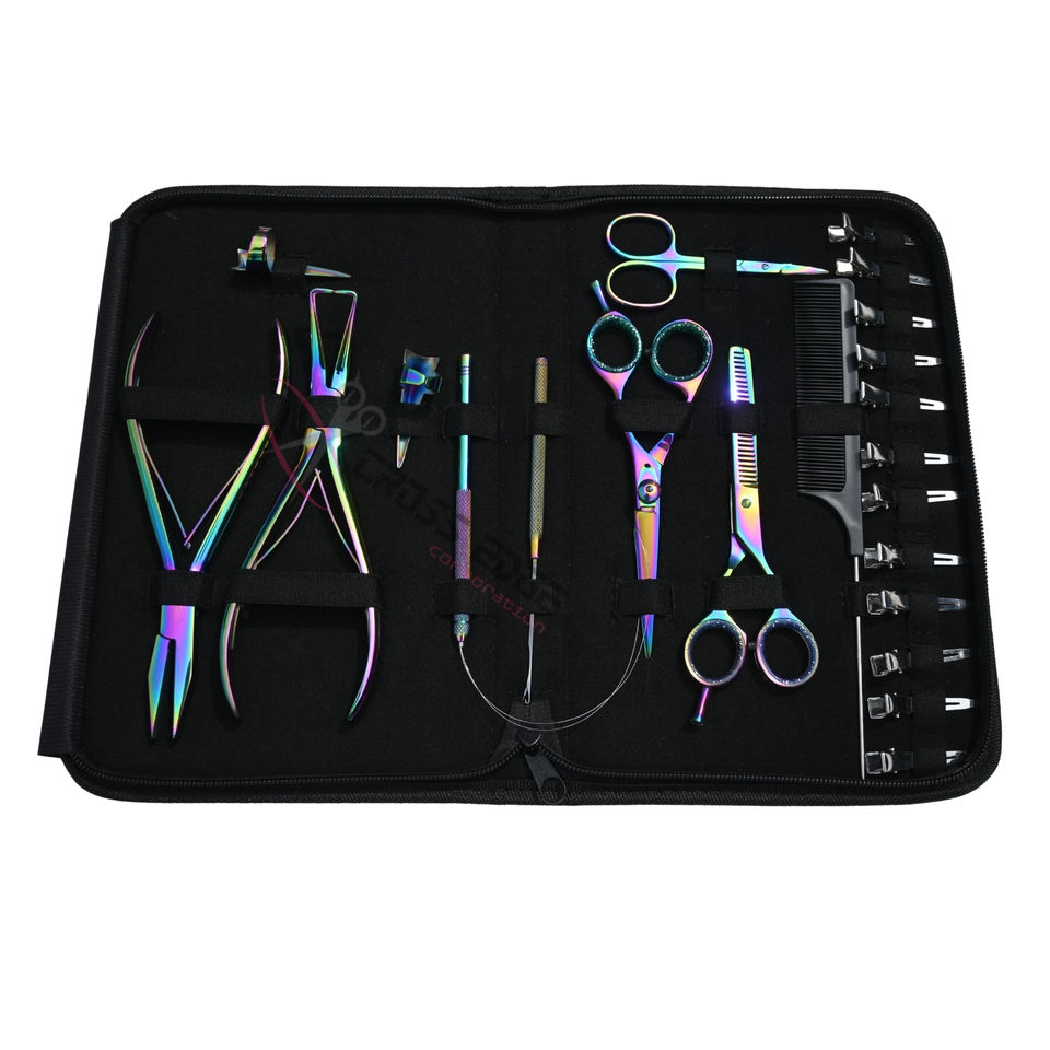Multi Color Hair Extension Tools Kit Flat Beads Crimper Microlink Removal Plier Barber Cutting Thinning Scissors Loop Hook Set